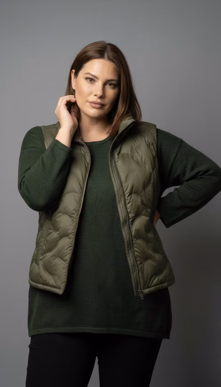 En röd lätt och smidig väst. En elegant och stilren look som passar till alla typer av outfits. Från danska ETAGE. Storlekar 42-54.