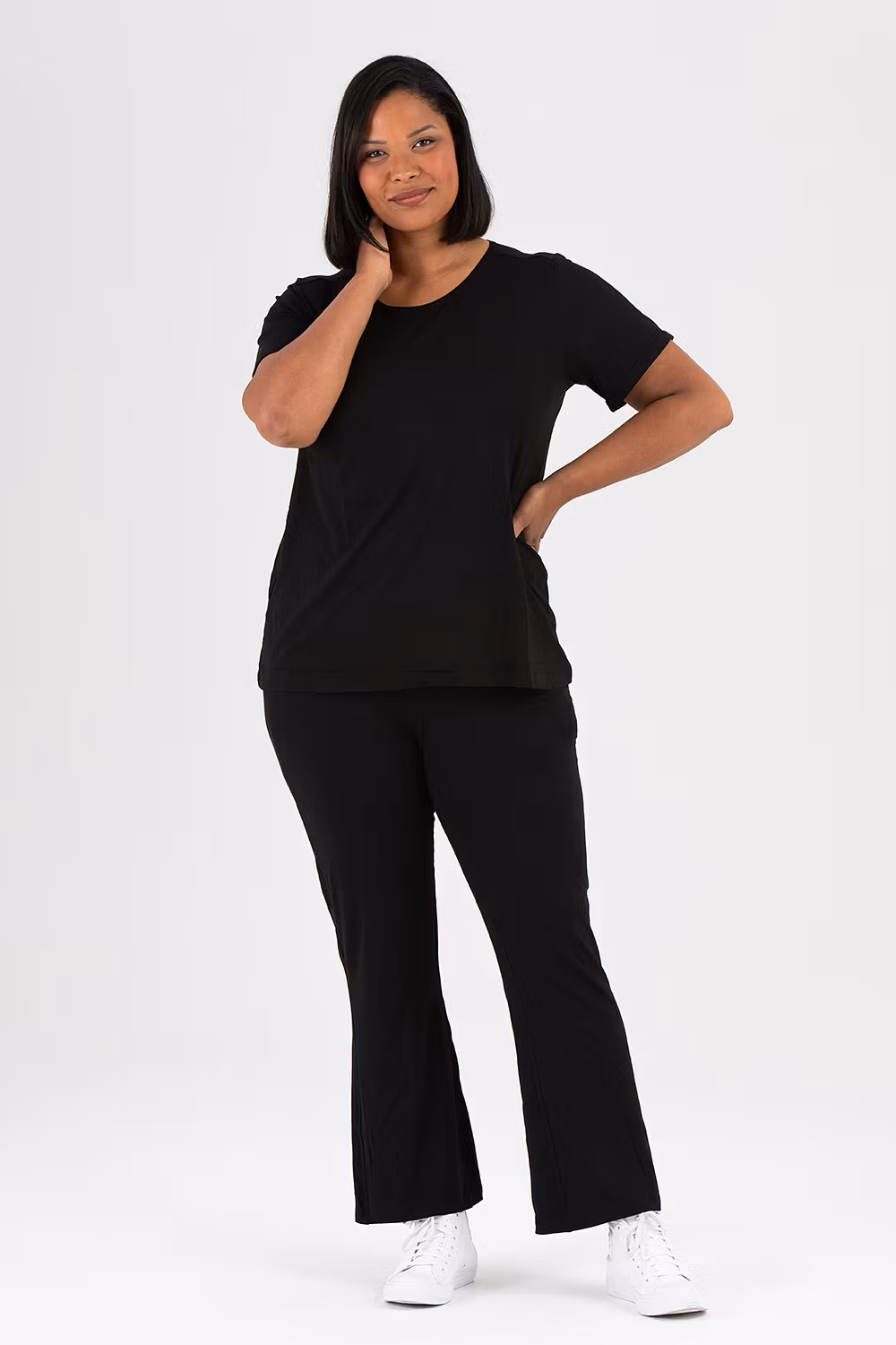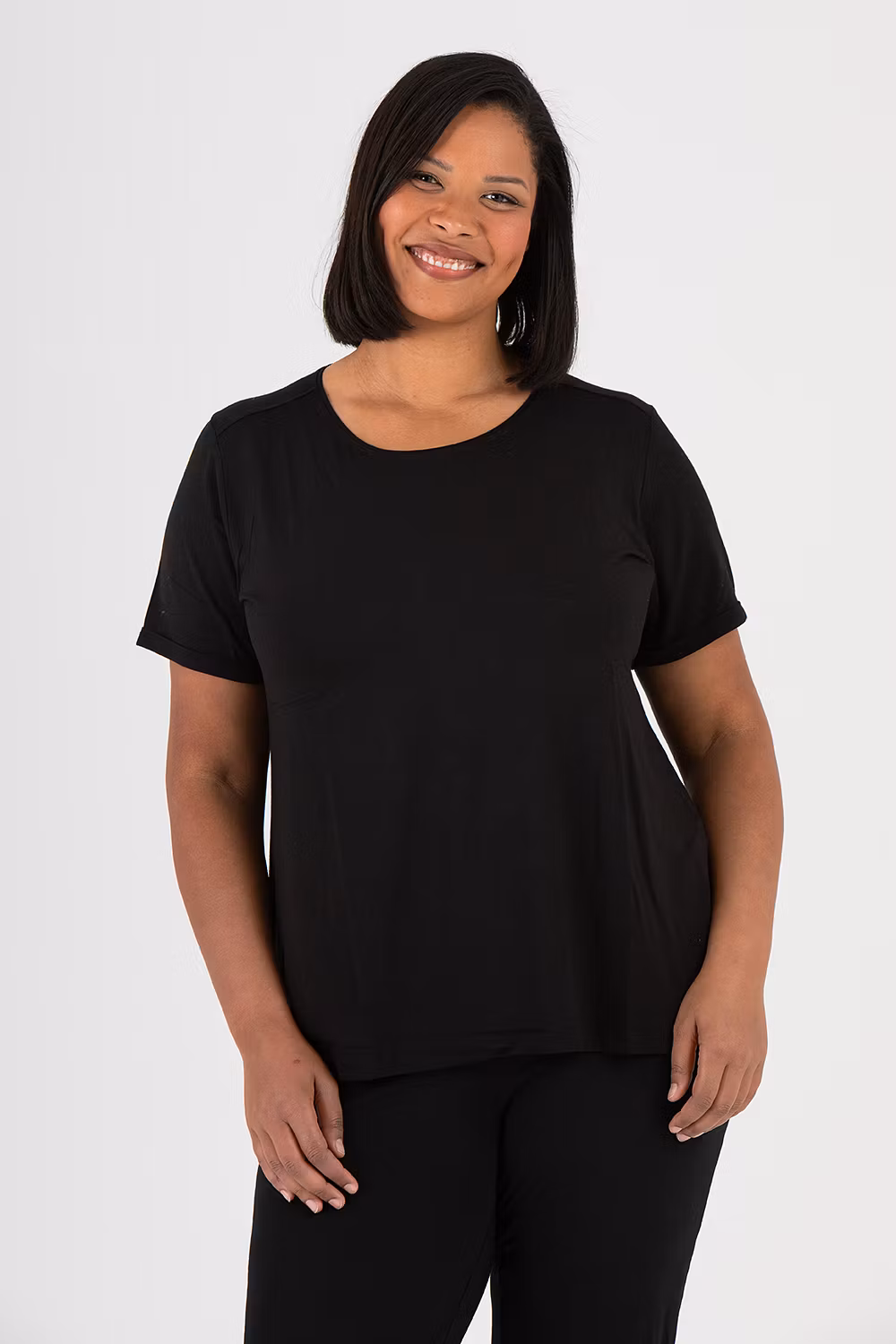 Kortärmad topp med rund hals och rak nederkant.