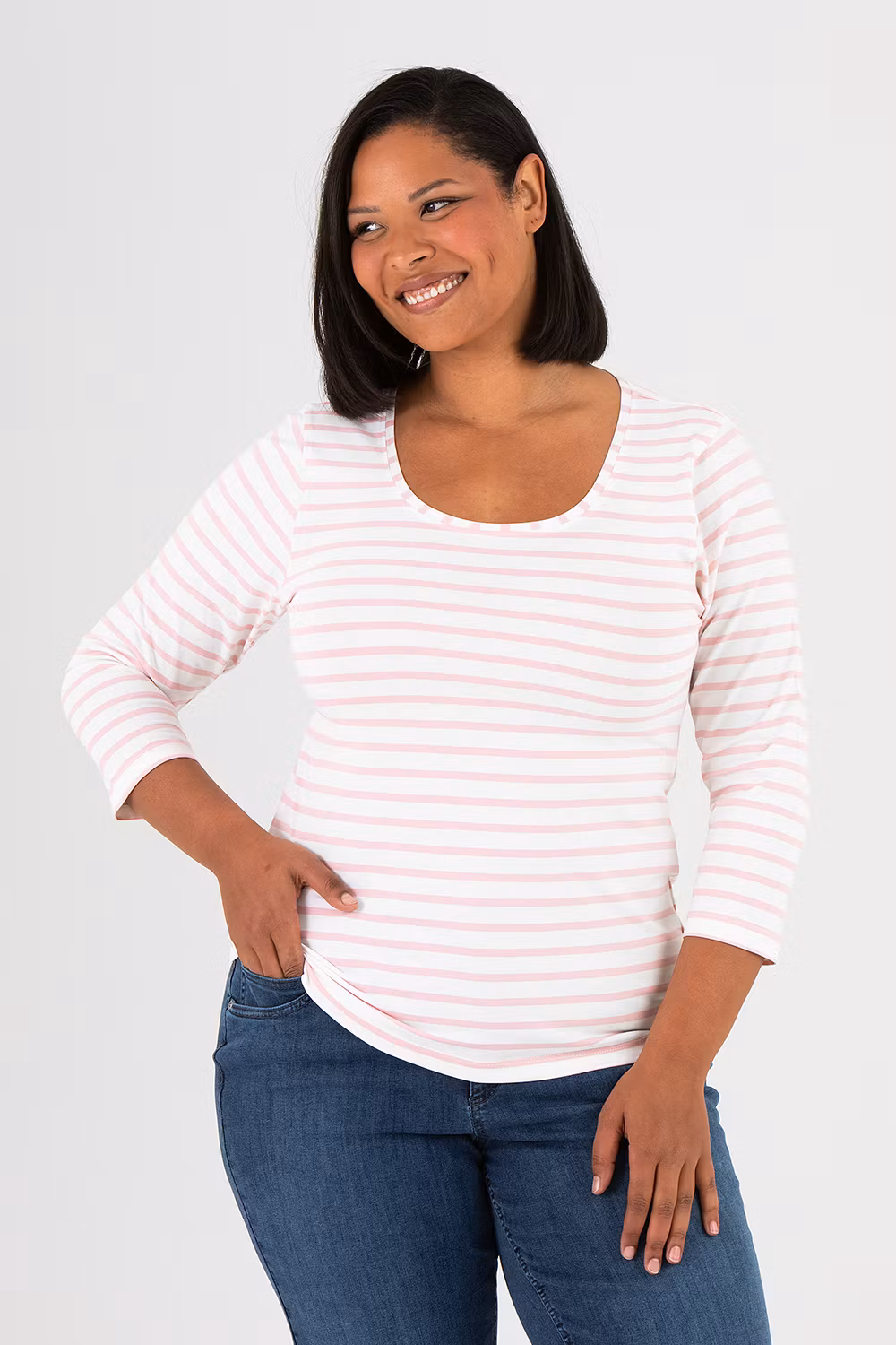 Rundringad randig ballerinatopp i skön bomullstrikå. Rosa/Vit. Finns i storlekar 42-56. Välj din storlek här!