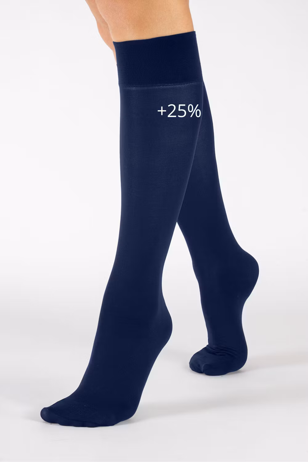 Knästrumpa speciellt anpassad för kraftiga ben med +25% extra vidd och brett komfortband. Hållbar kvalitet. Säljs i 2-pack.